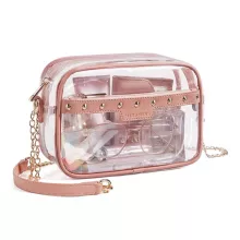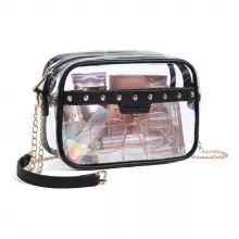 fashion and function. The rivet accents add a bold touch, while the transparent PVC ensures compliance with event regulations. Its soft, flexible build and casual shape make it comfortable for all-day wear, and the unisex design means anyone can carry it with confidence. With no bulky lining or compartments to weigh you down, it’s simplicity perfected.