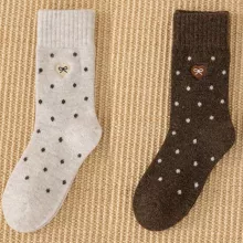 2 Pairs Women’s Woolen Polka Dot Socks – Warm & Stylish Winter Comfort