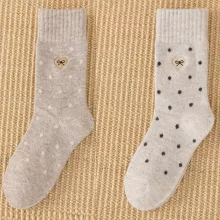 Step into warmth and charm with these 2 Pairs of Cute Embroidered Woolen Socks. Designed for women who love a mix of comfort and fashion, these cozy floor socks feature an adorable polka dot pattern that brings a playful touch to any outfit. Perfect for lounging at home or adding a cozy layer under your favorite winter boots, these socks keep your feet feeling soft, snug, and stylish all day long.
