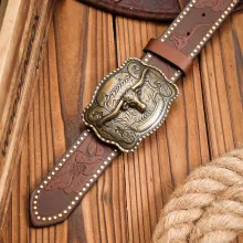 Use our battle tested marketing materials for Unisex Retro Western Buckle PU Leather Belt – Vintage Brown Style