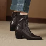 Every detail of these boots showcases exceptional craftsmanship. The upper is made from genuine leather that feels soft yet durable, while the pigskin insole provides superior comfort throughout the day. The microfiber lining ensures breathability, and the sturdy TPR outsole offers excellent grip for secure steps. With a high heel of approximately 2.5 inches (6.5 cm) and a trendy ankle-length cut, these boots perfectly balance elegance and comfort.Features You’ll Love