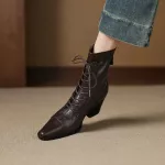 Embrace effortless elegance with these Women’s Pointed Toe High Heel Ankle Boots. Designed for the modern woman who loves to make a statement, these boots blend sophistication and comfort seamlessly. The sleek pointed toe, smooth genuine leather finish, and bold square heel create a look that’s both timeless and fashion-forward. Whether you’re dressing up for a dinner date, a business meeting, or a casual stroll through the city, these boots are your go-to for chic, confident style.Premium Craftsmanship & Quality