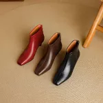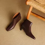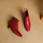 Step confidently into the new season with these Genuine Leather Chelsea Boots — a stunning blend of sophistication, durability, and modern style. Crafted from premium genuine leather inside and out, these ankle boots offer both luxury and lasting wear. Designed for the woman who values elegance and comfort, they elevate every outfit, from casual jeans to tailored skirts. With a sleek square toe and spike heel design, they effortlessly bring a touch of refined confidence to your wardrobe.Key Features