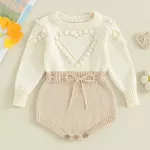 Keep your baby girl warm and stylish all season long with this adorable knitted heart romper. Designed for comfort and cuteness, this long-sleeve jumpsuit is made from a soft cotton blend that’s gentle on delicate skin. The cozy knit texture and sweet heart patchwork make it a charming choice for autumn and winter days—perfect for playtime, naps, or special family moments.Charming Design & Thoughtful Details