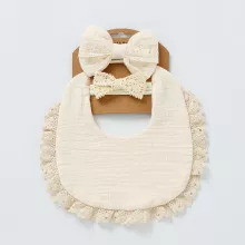 Use our battle tested marketing materials for Cotton Gauze Lace Baby Bib & Bow Headband Set – Soft, Adjustable & Stylish