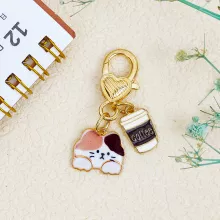 Use our battle tested marketing materials for Cute Kitten Coffee Cup Keychain Gold Cat Bag Charm Key Ring