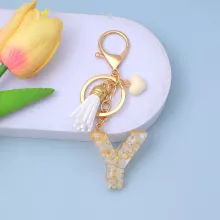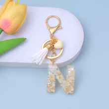 Use our battle tested marketing materials for Heart Initial Letter Keychain with White Tassel