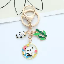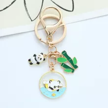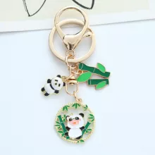 Cute Panda Bamboo Keychain – Cartoon Metal Bag Charm & Car Key Ring
