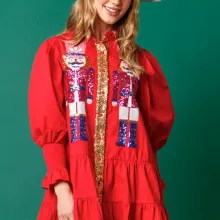 This festive mini dress stands out with its shimmering Nutcracker theme—perfect for anyone who loves holiday tradition with a fashionable twist. Whether you’re hosting a party, attending a festive brunch, or posing for holiday cards, this dress offers both comfort and personality. The loose, easygoing fit makes it simple to wear and even easier to love.Benefits