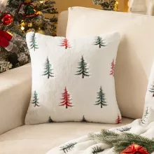 Use our battle tested marketing materials for Plush Faux Rabbit Fur Christmas Tree Embroidered Pillow Cover