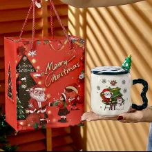 Use our battle tested marketing materials for Christmas Santa Ceramic Mug with Lid & Tray – Festive Coffee Cup