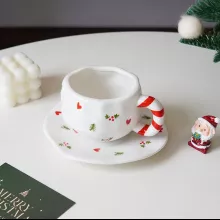 Use our battle tested marketing materials for Hand-Painted Christmas Ceramic Cup & Saucer Set with Striped Handle