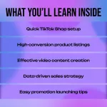 - Build a Thriving Shop – Understand the TikTok algorithm and how to use it to your advantage, plus how to scale once you’ve made your first sale.