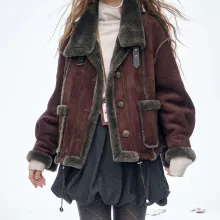 Use our battle tested marketing materials for Vintage Plush Trim Convertible Wool-Blend Belted Coat for Women