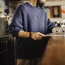 Use our battle tested marketing materials for Vintage Blue Stripe Knit Sweater for Men – Ribbed Crewneck Thermal Pullover