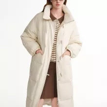 Meet the jacket that turns cold days into cozy style moments. This long down jacket is designed for women who want warmth without bulk and comfort without sacrificing a clean, modern look. With its smooth solid finish, stand collar, and relaxed straight cut, it brings together function and elegance in one easy-to-wear winter essential.&nbps;