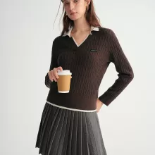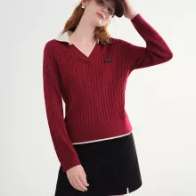 Use our battle tested marketing materials for Contrast V-Neck Cable Knit Sweater for Women