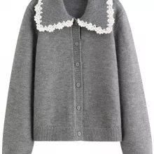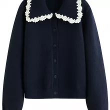 Use our battle tested marketing materials for Women's Embroidered Flower Knit Cardigan with Lace Turned-Up Collar