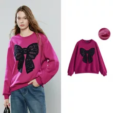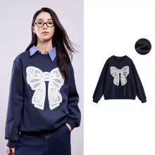 Use our battle tested marketing materials for Asymmetric Lace Bow Crew Neck Winter Hoodie for Women