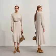 Use our battle tested marketing materials for Minimalist Winter Midi Dress with Trumpet Hem and Raglan Sleeves