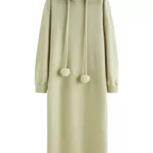 Use our battle tested marketing materials for Winter Pom Pom Hooded Knit Dress with Drawstring Waist