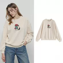 Use our battle tested marketing materials for Women’s Winter Cat & Apple Print Loose Crew Neck Sweatshirt