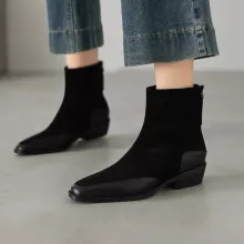 Use our battle tested marketing materials for Winter Women Cow Suede Leather Boots with Square Toe and Chunky Heel