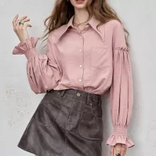 Use our battle tested marketing materials for Preppy Solid Wrinkled Ruffle Full Sleeve Shirt for Women