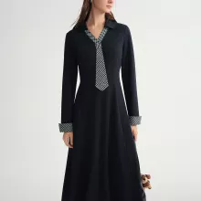 Use our battle tested marketing materials for Women's Winter Plaid Tie-Neck Shift Dress with Asymmetric Panel Design