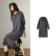 Crafted with a mid-calf length and an easy A-line silhouette, this dress provides a loose, flowing fit that complements a variety of body shapes. The turn-down collar and button detailing add a hint of sophistication, while the regular, full-length sleeves keep you warm on chilly winter days. Its breathable knit fabric—made from polyester and nylon—offers both durability and softness, ensuring all-day comfort whether you’re heading to work or enjoying a relaxed afternoon.Key Features