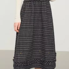 Use our battle tested marketing materials for High-Waisted Plaid Wool A-Line Skirt with Wooden Buttons