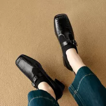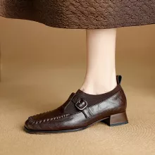 Use our battle tested marketing materials for Winter Women Loafers Square Toe Chunky Heel Shoes with Buckle