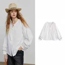 Use our battle tested marketing materials for Asymmetric Lantern Sleeve Crew Neck Blouse for Women