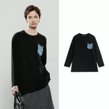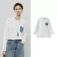Use our battle tested marketing materials for Asymmetric Spliced Puppy Embroidery Flip Pocket Winter Women’s T-Shirt