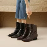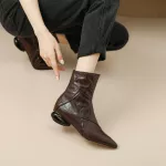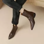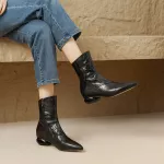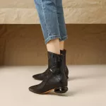 Step into the new season with confidence and elegance. These Genuine Leather Pointed Toe Ankle Boots are designed for women who appreciate modern style, premium materials, and all-day comfort. Crafted from high-quality sheepskin leather, these boots offer a smooth, luxurious feel while keeping your feet supported during daily wear. Their unique strange-style heel and sleek pointed toe add a bold, fashion-forward touch to any outfit. Perfect for cool days, these boots pair beautifully with jeans, skirts, and tailored pants. Whether you’re heading to work, meeting friends, or enjoying a casual day out, they deliver style without compromising comfort. Their soft genuine leather lining and sheepskin or fleece insole make every step feel cushioned and warm, especially during breezy weather.Premium Features