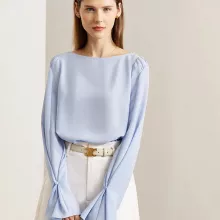 Use our battle tested marketing materials for Elegant Solid Slash Neck Chiffon Blouse with Flare Sleeves for Women