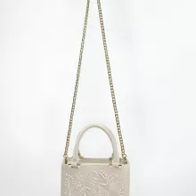 Use our battle tested marketing materials for Pearl Mini Bucket Crossbody Handbag with Chain Strap and Floral Detail