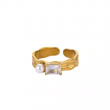 Use our battle tested marketing materials for Gold Stainless Steel Zircon & Imitation Pearl Geometric Open Ring