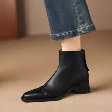 Use our battle tested marketing materials for Women’s Square-Toe Leather Ankle Boots with Chunky Heel