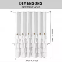 Use our battle tested marketing materials for White Ruffle Farmhouse Shower Curtain with Decorative Button Detail