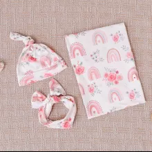 Cozy Newborn Swaddle Blanket Set with Matching Hat & Bow