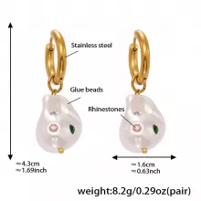 Discover the perfect accessory to transform any outfit with these stunning stainless steel hoop earrings. Featuring a delicate baroque imitation pearl pendant and finished with 18K gold plating, these earrings are designed to capture attention and exude sophistication. Their graceful dangle adds movement and charm, making them an ideal choice for women who love to express elegance and style effortlessly. These earrings are crafted from high-quality stainless steel, ensuring durability and long-lasting shine. The gold plating adds a luxurious touch without the high price, while the lightweight design guarantees comfortable wear all day or night. Perfect for both casual outings and formal events, they are versatile enough to complement every wardrobe.Product Features