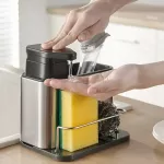 Upgrade your kitchen experience with this sleek and functional 3-in-1 Stainless Steel Kitchen Sink Organizer. Designed to streamline your kitchen space, this all-in-one accessory offers convenience and style by combining a soap dispenser, sponge holder, and brush organizer into one compact design. Say goodbye to clutter and keep your kitchen sink organized and tidy!Key Features: