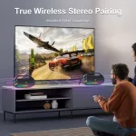 This Bluetooth speaker isn’t just a speaker—it’s a full-fledged entertainment experience. Whether you’re hosting a party, enjoying a day at the beach, or just relaxing in your backyard, this portable powerhouse delivers exceptional sound and visual effects. The 60W stereo sound with dual subwoofers ensures that you never miss a beat, while the dynamic RGB lights make every moment feel like a concert.Its waterproof IPX5 design means you can take it anywhere, from the poolside to a camping trip, without worrying about it getting wet. The Bluetooth 5.0 ensures quick, stable connections, while the TWS feature lets you sync two speakers for the ultimate sound setup.