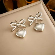- Style: Fashionable hoop earrings featuring a heart shape with a decorative bow.