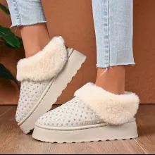 Use our battle tested marketing materials for Rhinestone Plush Winter Slip-On Ankle Boots with Thick Platform Sole
