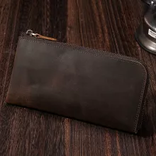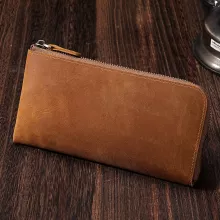 Use our battle tested marketing materials for Vintage Zipper Closure Crazy Horse Leather Unisex Long Wallet with Multi-Card Slots