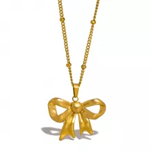 Use our battle tested marketing materials for Elegant Bow Pendant Necklace in Gold-Tone Stainless Steel for Women