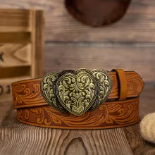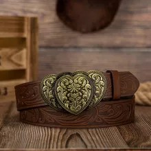 Use our battle tested marketing materials for Three-Dimensional Floral Pattern Carved Heart Large Plate Buckle PU Embossed Belt