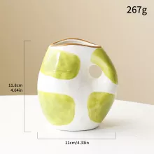 Bring charm, color, and personality into your space with this modern green ceramic cartoon vase. Designed to stand out while blending effortlessly into contemporary interiors, this small tabletop vase features a cheerful cartoon-inspired look paired with a stylish geometric pattern. The smooth ceramic finish and calming green tone make it a delightful accent for shelves, coffee tables, desks, or nightstands.